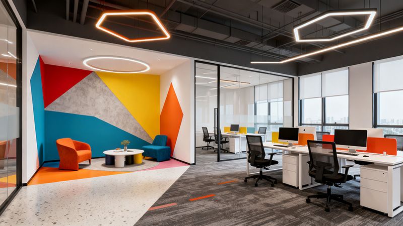 公共區域的裝飾材料與設備同樣不可忽視:會議室的投影屏、會議桌(6-10人位約8000-15000元)、地毯(普通化纖地毯約80-150元/平米,羊毛混紡約300-500元/平米);茶水間的櫥柜(地柜約1200-1800元/延米,吊柜約800-1200元/延米)、電器(咖啡機、微波爐等);以及綠植、裝飾畫、標識系統等軟裝,整體下來約占總主材費用的20%-30%。
